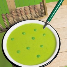 4. Gdy trochę przestygnie, wyłów kilkadziesiąt groszków do dekoracji i włóż je do miseczki. Pozostałe zmiksuj. Rozlej zupę do miseczek. Do każdej dodaj łyżkę śmietanki i dziesięć groszków.
