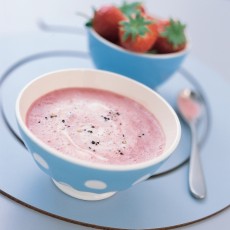 Jeżeli zupa jest podawana od razu, wmieszaj kostki lodu i podawaj we wcześniej schłodzonych talerzach z listkiem mięty albo bazylii.