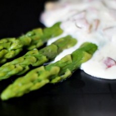 Gotowane szparagi z sosem z sera pleśniowego