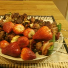 Karkówkę kroimy w cieńsze kawałki. Cebule obieramy i kroimy na pół księżyce-tak samo kroimy ogórki i boczek. Usuwamy ziarenka z papryki i kroimy w większe kawałki. Wszystko nadziewamy na przemian- mięso , warzywa według uznania. Szaszłyki obsypujemy przyprawą do grilla oraz ziołami prowansalskimi - kładziemy na ruszcie i pieczemy, aż się zarumienią. Podajemy z sałatą i sosem czosnkowym lub surówką z papryki i ogórka albo polewamy sosem orzechowym lub ketchupem. Idealne dla całej rodziny wszyscy je uwielbiają. W tym roku na grillu już kilka razy robiliśmy szaszłyki i cieszyły się największym powodzeniem -Gorąco polecam.... SMACZNEGO......