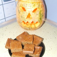 Z dyni wyjąć miąższ, a z niego pestki. Wszystkie sypkie składniki zmieszać razem. W drugiej misce zmiksować jajka z olejem i dodać do nich wymiksowany wcześniej miąższ dyniowy. Dodać składniki sypkie i wyrobić ciasto mikserem. Przelać na natłuszczoną i posypaną bułką tartą blachę i piec 30-40 minut w nagrzanym do 180 stopni piekarniku. Po wyjęciu i ostygnięciu można udekorować ciasto cukrem pudrem lub lukrem.