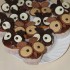 Jajka ubić z cukrem na puszystą masę. Dodać pozostałe składniki ciasta i dokładnie zmiksować. Ciasto wlać do wyłożonej papierowymi foremkami blaszki i wstawić do nagrzanego do 200 stopni piekarnika. Piec przez ok. 30 minut. Następnie wystud