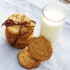 Płatki owsiane rozdrobnić w młynku do kawy, dodać do nich przesiane mąki i proszek do pieczenia, sól, cukier oraz ziemne masło i mleko (ew. posiekaną czekoladę). Zagnieść ciasto i rozwałkować na grubość około 5 mm. Wycinać ciastka o dowoln