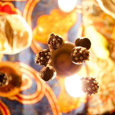 Ciasteczka dokładnie wymieszaj z serkiem i masłem orzechowym. Roztop czekolady w kąpieli wodnej i dodaj dwie łyżki do masy. Możesz, jeśli lubisz, dorzucić drobno posiekane orzeszki. Łyżką do wycinania kulek formuj równe gałki; włóż je do lodówki na 15 minut. Końcówki patyczków do szaszłyków (te tępe końce) wkładaj do płynnej czekolady, a następnie wbijaj w schłodzone kulki. Znów włóż do lodówki na kolejne 30 minut. Następnie każdego popsa zanurzaj w czekoladzie, dekoruj kulkami i wbijaj w styropian, by czekolada dobrze zastygła. Voila!