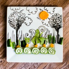 Robimy ciasto naleśnikowe. Miksujemy mleko i jajko, dodajemy tyle mąki, aby ciasto było lejące ale niezbyt rzadkie. Szpinak wcześniej rozmrażamy (możemy użyć świeży), rozdrabniamy i dodajemy do ciasta (im więcej szpinaku tym bardziej zielone naleśniki:). Smażymy naleśniki na małej ilości oleju. Smarujemy serkiem białym kanapkowym, możemy również ułożyć plastry łososia lub wędliny. Zawijamy w rulon, kroimy w grube plastry i przekłuwamy wykałaczką.