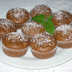 Do miski wlać rozpuszczone i ostudzone masło z cukrem, dodać jajko oraz mleko. Wymieszać. W drugiej misce wymieszać składniki suche czyli: mąkę, proszek do pieczenia, cukier waniliowy, cynamon i sól. Dodać mokre składniki do suchych i wymieszać do połączenia obu mas. Na koniec dodać posiekane orzechy i wymieszać. Foremki muffinkowe napełnić do połowy, włożyć po kawałku chałwy i przykryć pozostałą masą. Piec w temperaturze 180ºC , przez około 20 minut. Ostudzone muf finki posypać cukrem pudrem.