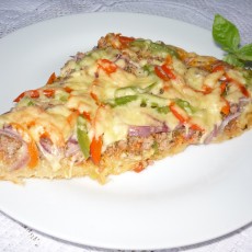 Pokrusz drożdże do miski, wlej trochę wody i mieszaj, aż drożdże się rozpuszczą. Dodaj resztę wody, olej, sól i mąkę. Wyrabiaj ciasto, aż będzie gładkie, po czym przykryj je i pozostaw w ciepłym miejscu do wyrośnięcia. Podsmaż mieloną wołowinę na maśle na brązowy kolor. Dodaj przyprawę do pizzy, oregano, sól i pokrojony w drobniutką kosteczkę czosnek. Ciasto rozwałkuj i przełóż na natłuszczoną blachę. Rozsmaruj na wierzchu przecier pomidorowy i mięso z przyprawami. Paprykę i cebulę pokrój w cienkie paseczki. Tak przygotowane warzywa ułóż na pizzy i posyp tartym żółtym serem. Piecz pizze około 35 minut w piekarniku nagrzanym do 180oC i od razu podawaj.
