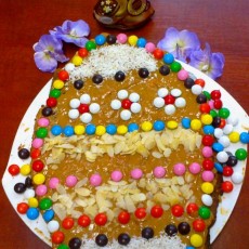 Ciasto: Mąkę przesiewam razem z cukrem pudrem do miski, dodaję schłodzoną i pokrojoną na małe kawałeczki KASIĘ, wbijam jajko. Całość zagniatam na jedolite ciasto, owijam w folię spożywczą i wkładam do lodówki na 1 godzinę. Po tym czasie dzielę ciasto na pół. Każdą część rozwałkowuję na blacie lekko podsypanym mąką, na grubość kilku milimetrów. Z ciasta wykrawam kształt jajka, nakłuwam widelcem. Z resztek roluję cienkie wałeczki, ozdabiam nimi brzegi ciasta. Wkładam do piekarnika nagrzanego do temperatury 190*C i piekę ok. 15 - 20 minut do lekkiego zarumienienia. Po upieczeniu pozostawiam do ostudzenia. Ostudzone placki przekładam dżemem Kajmak: Mleko gotuję z cukrem na średnim ogniu co jakiś czas mieszając aż do zgęstnienia i lekkiego zbrązowienia. Na koniec dodaję 60 g Kasi, mieszam do połączenia. Gorący kajmak wykładam na wierzch ciasta, rozprowadzam łyżką. Wierzch dekoruję wiórkami kokosowymi, suszonymi morelami, posypką czekoladową oraz kolorowymi lentilkami. Ciasto najlepsze jest po 1 - 2 dniach od przygotowania.