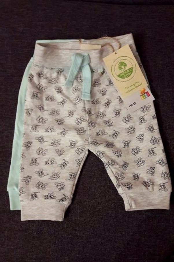 Jedne w myszki, drugie turkusowe. Z bawełny organicznej :)