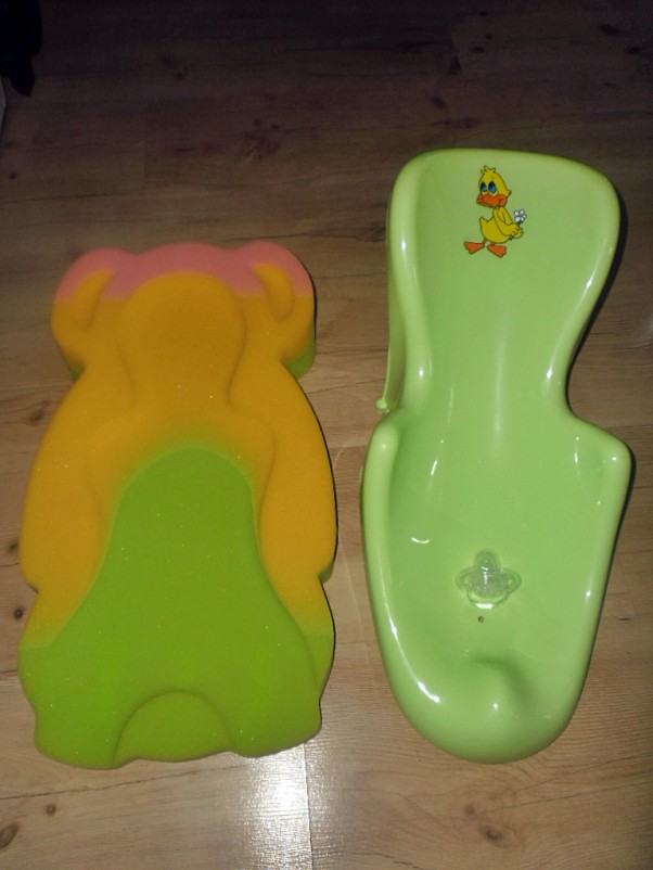 Ja jako niedoświadczona mama jestem lekko przerażona czekającymi mnie kąpielami bobasa. Postanowiłam się zabezpieczyć takimi oto gadżetami. Nie wiem czy ich użyję raz czy tak mi one ułatwią kąpiel że się z nimi nie rozstanę na długo. Muszę je po prostu przetestować a stanie się to dopiero gdy Hubert będzie na świecie. Czytam opinie o tych rzeczach i ilu rodziców tyle poglądów na ten temat. Muszę się po prostu sama przekonać czy u nas się sprawdzą. A smoczek to gratis od sklepu :-)
