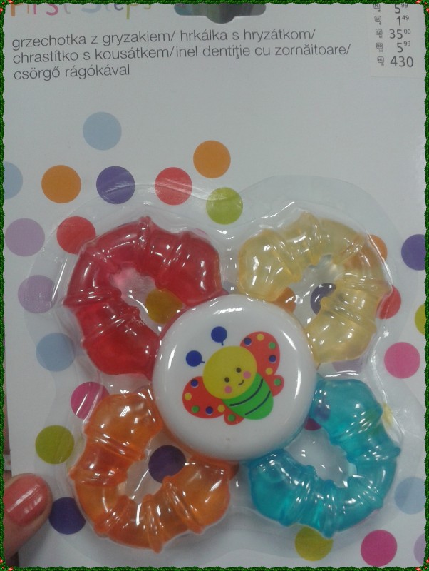 Z tym mogłam jeszcze poczekać ale co tam :)Grzechotka z gryzakiem.
