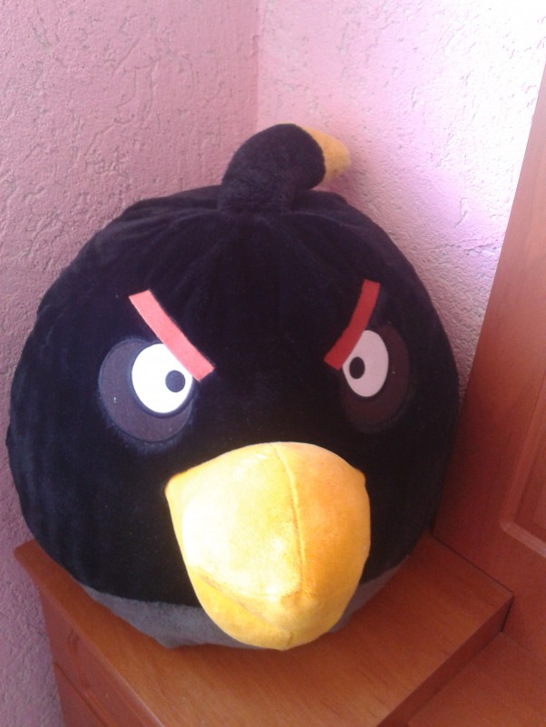 Mój synuś chociaż jeszcze nie wie kim jest Angry Birds to już w pokoju gości się jedna z tych super maskotek czekając na jego przyjście :) Męża siostrzeniec, był na majówce u mamy, która mieszka w Holandii i tam wygrał dla naszego synka ogromną maskotkę Angry Birds zwaną Bomba :) Super pamiątka i wzruszenie, że nawet ci najmłodsi pamiętają o naszym synku.