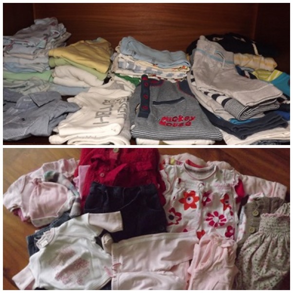 Po kolejnej bezsennej nocy dzidziuś swoje ubranka ma już uporządkowane rozmiarami. Ubranka adekwatne do pory roku w jakiej ma przyjść na świat i oczywiście rozmiarowo trafiły na półeczke, pozostałe ubranka zostały spakowane i odłożone. W tym nieogarnietym stosie ubranek znalazły się również takie, które nam nie posłużą, ponieważ są typowo kobiece. Mój starszy synek miał być dziewczynką, po porodzie okazało się, że to jest chłopczyk, także troszkę tych rzeczy się nazbierało, przeleżały, przeczekały ale nie dla nas. Myślę, że posłużą małej Laurce, córeczce mojej siostry, która ma się urodzić w lipcu, co prawda przyjdzie ona na świat 1500 km od nas, ale preznty dostarczymy, a jeżeli nie to znajdziemy w pobliżu inną małą królewne, której przekażemy te różowe stroje.
