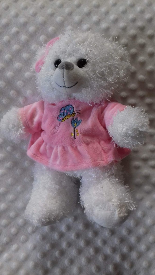 Nasza pierwsza mała maskotka przytulanka dla mojego dziecka....jest tak mała że z łatwością sprytne małe rączki będą potrafiły z czasem złapać misia i się nim pobawić...a raczej misię...