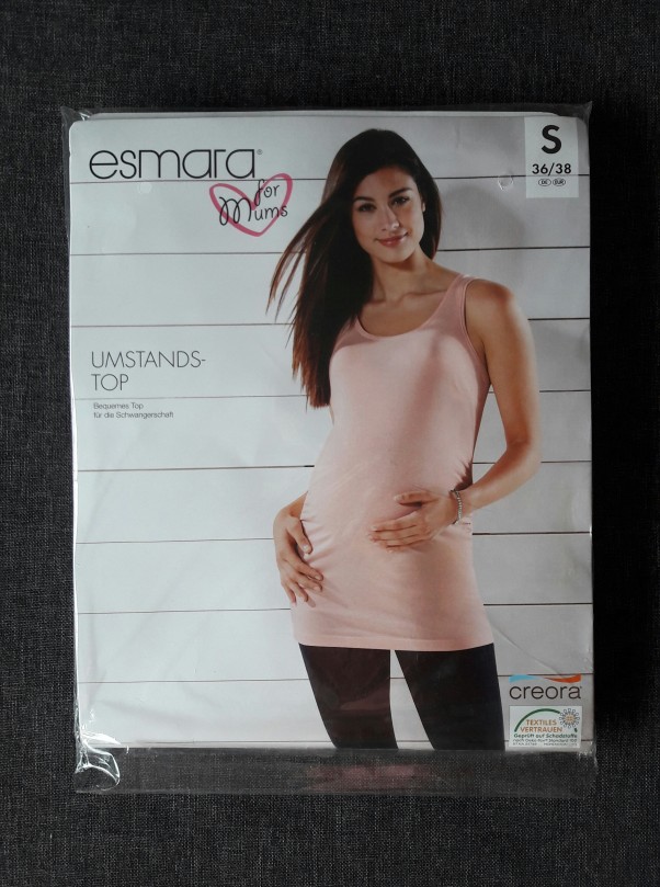 Trochę zawiodłam się na bluzkach ciążowych bo te z rękawami wyglądały jak worki a te bez rękawów w miarę ok. Wzięłam najmniejszy rozmiar S, ale i tak mam dużo luzu pod piersiami.