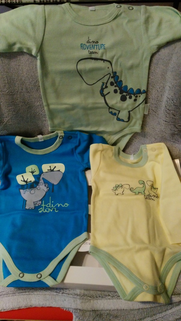 Oto wyprawka wygrana w konkursie od Smaki Macierzyństwa :) Piękne dinozaury :)