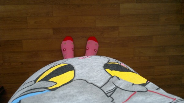 Brzuch rośnie jak na drożdżach. Do przodu, do tyłu, do przodu, do tyłu-trochę się rozbujam, to zobaczę jakie rano zakładałam skarpetki ;)