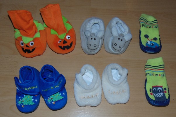 No i dodam też zdjęcie bucików i kapciuszków, które kupiłyśmy. Na Halloween Lenka powinna mieć pół roku, zależy kiedy się urodzi :) to te kapcie dynie powinny być raczej dobre. A te niebieskie kupiłyśmy dla synka mojej kuzynki, który też jest jeszcze w brzuszku, mały Hubercik. :)