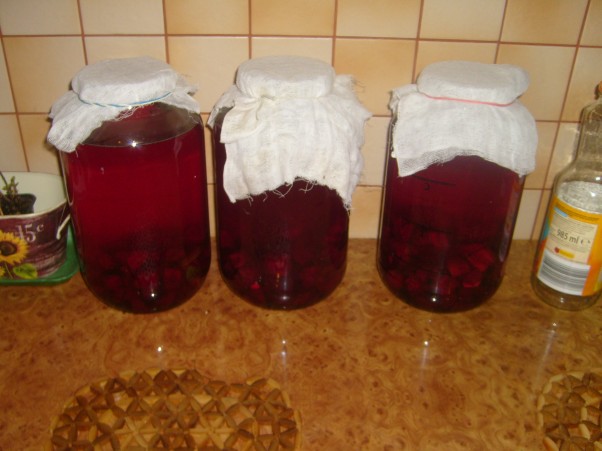 Od kilku dni kiszę sobie barszczyk czerwony, żeby wspomóc swój organizm. Wyniki badań wyszły ciut niesatysfakcjonujące, więc sprzyda się nam taki duży wspomagacz:) Burak to wspaniałe warzywko - zapobiega anemii, zawarte w burakach barwniki należą do bardzo silnych przeciwutleniaczy i czterokrotnie zwiększają przyswajanie tlenu przez komórki. Wspomagają więc układ krwionośny. Kwas foliowy, w który obfitują buraki, nie tylko warunkuje prawidłowy rozwój płodu, ale też pomaga usunąć z krwiobiegu homocysteinę - jej wysoki poziom może wywołać choroby serca. Buraki pomagają unormować poziom cholesterolu, przeciwdziałają też zwapnieniom naczyń krwionośnych.
