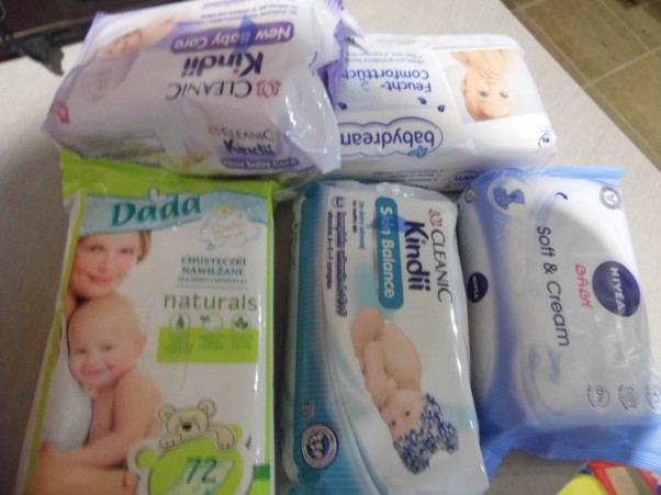 Na początek kupiłam chusteczki różnych firm, żeby zobaczyć które malec będzie najbardziej tolerował. Kupiłam również pieluszki, żeby maluszek miał w co siusiać, a tata nie musiał od początku biegać i kupować tylko wolny czas spędzał z synkiem.
