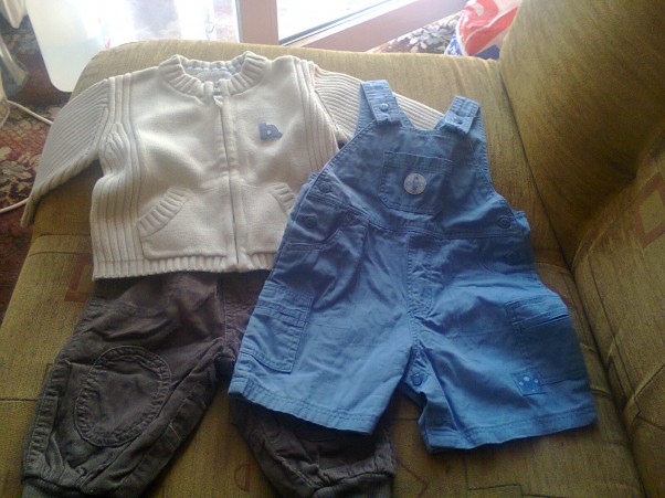Niepokój mój spowodował fakt że dla zabawy na internecie zrobiłam sobie test związany z wyprawką dla dzidziusia i jakież było moje zdziwienie kiedy okazało się że nie jestem nawet w połowie przygotowana na powitanie maleństwa. Oczywiście wiem, to tylko głupi test na jednym z portali dla mam ale jednak.... daje do myślenia. Ponieważ sytuacja ta miała miejsce w piątek wieczorem ( 21.03) w sobotę rano postanowiłam wybrać się sama na malutkie zakupy w sklepie z używaną odzieżą. Kupiłam parę ubranek dla synka za które zapłaciłam niecałe 20 zł oraz prześliczny firmowy żakiecik dla mnie za 35 zł :)))