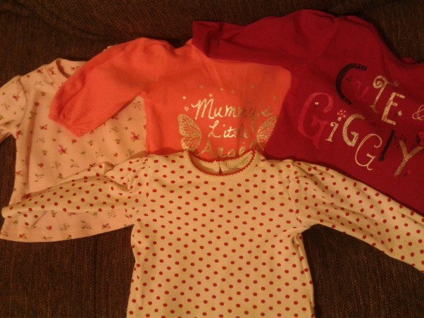 Bluzeczki :) Szafeczka Oli nie wygląda już jak na wcześniejszym zdjęciu z przygotowań :) Brakowało w niej miejsca i ciuszki z przedziału 3-6 m. przeniosłam do kolejnej szafki, żeby zrobić miejsce na 0-3 :)