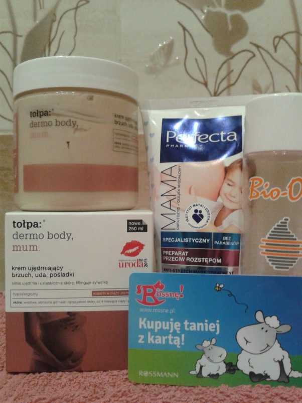 Mama również musi o siebie zadbać, przygotować swoje ciało do powitania. Zanim Maleństwo się pojawi to mamusi musi wyrosnąć duuuży brzuszek a o wiele przyjemniej się na niego patrzy i dotyka, gdy skóra jest zadbana, nawilżona, bez rozstępów :) Wszyscy wiedzą, że zadowolona mama to zadowolone dziecko, więc dbajmy o siebie, aby potem nasze Maleństwa również były wesołe :) Tutaj chciałam polecić innym mamo założenie karty Rossnę, gdyż zdarzają się fajne promocje dla posiadaczek kart i można coś taniej kupić czy dla siebie czy dla Maleństwa ;) Ja dziś kupiłam sobie krem na Tołpa Mum prawie 15 zł taniej niż normalnie, więc uważam, że warto.