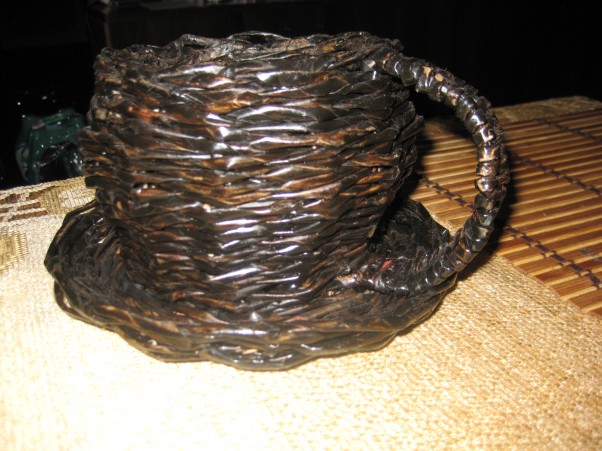 zaczęłam pleść papierową wiklinę, krok po kroczku i jest coraz lepiej. Zrobiłam już przyborniki na kosmetyki, doniczkę na kwiatka, wazonik, dekoracje świąteczne takie jak gwiazdy choinki i wianki oraz na dzień babci jedna uszczęśliwiłam kuferkiem a druga osłonką na kwiatka w kształcie filiżanki :) Zabieram się za kosz na bieliznę do łazienki i czekamy dalej na maleństwo :)