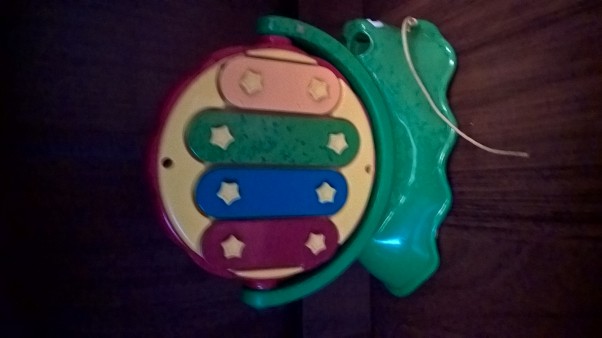 Z jednej strony cymbałki z drugiej bębenek taka zabawka dwa w jednym. Ważne ze robi dużo hałasu bo dzieci to lubią