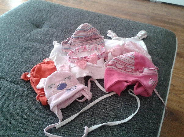 Czapeczki również przygotowane. Są takie malutkie i słodkie :) ostatnio przeglądałam zdjęcia i zobaczyłam jak mała była Oliwka, gdy nosiła te czapeczki. I nasza Ola będzie taką małą kropką :) a jeśli wda się w mamusię z włoskami to czapeczki i chusteczki będą nam długo towarzyszyć (mi włoski zaczęły rosnąć dopiero jak skończyłam roczek a wcześniej byłam łysa jak kolano) :)