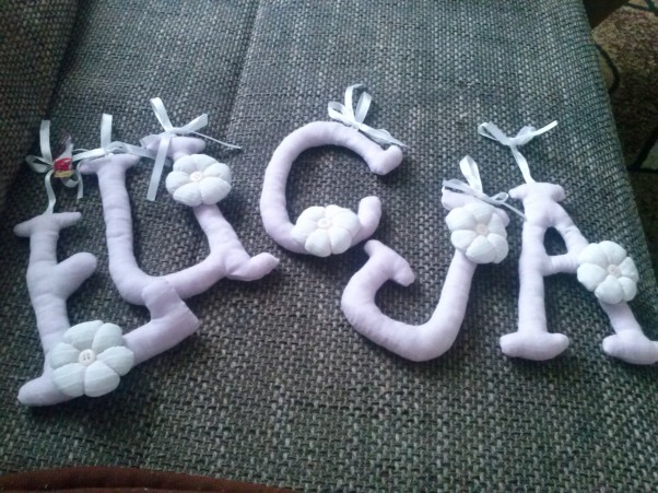 mama postanowiła że nad łóżeczkiem będę miała literki ze swoim własnym imieniem-dopóki wszyscy odwiedzający sobie go nie zapamiętają :D imię mam ładne,literki też-szyła mi je "ciocia"Agata jak dla mie super :)