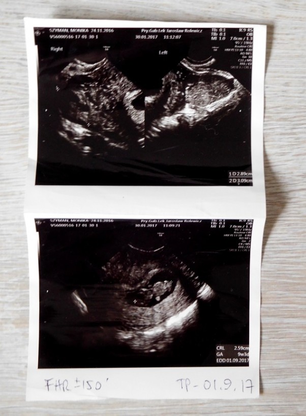 To już drugie Usg robione 30.01,ale dopiero dziś mam chwilę aby je opisać :) Maluszek był wtedy w 9 tyg i miał 2,59 cm <3 a już machał rączkami i kręcił pupką hihi. Kolejne usg będzie w 15 tygodniu, już się nie mogę doczekać. Kto patrzy na to zdjęcie to mało co widzi ale ja widzę wszystko, główkę, brzuszek, rączki i mini nóżki, moje maleństwo :*