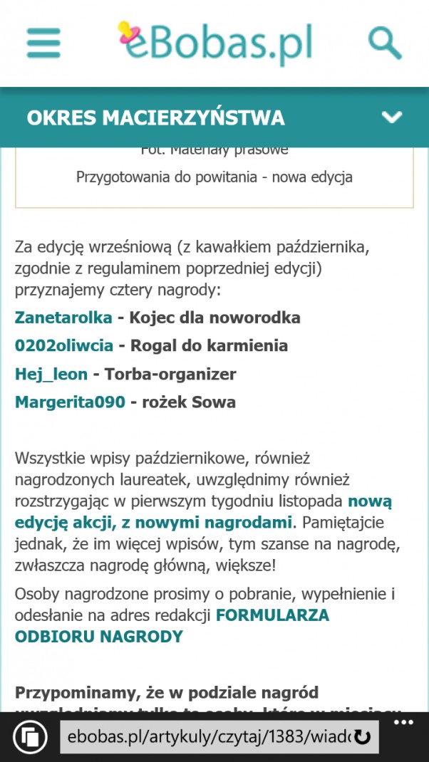 To jest szok dla mnie że udało ni sie wygrać nagrodę a w dodatku główną. Jestem bardzo wdzięczna i pewna ze długo będzie służył nam pomocą i wygodą taki kojec. Dziękujemy bardzo