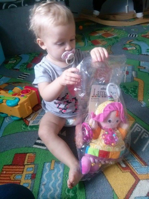 Właśnie zawitał do nas listonosz z przyjaciółką Emilką :) jak widać nie tylko dla nienarodzonej córki jest to nagroda bo starsza siostra ma chrapkę podwędzić młodszej fant ;)