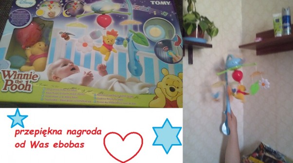 dzisiaj przyszła druga nagroda od Was :) jest piękna :) ma ładne melodie a ustawiona na tryb nocy delikatnie świeci i gra kołysanki...przy takiej karuzeli moja Królewna na pewno będzie miała piękne sny.....DZIĘKUJEMY EBOBAS