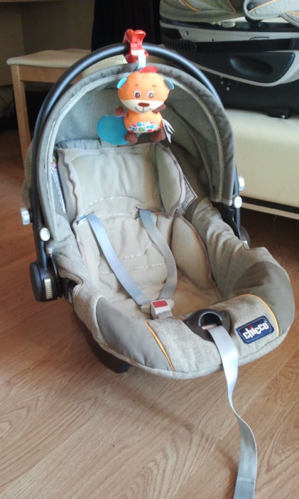 A do kompletu z wózkiem, fotelik :) Z dodatkowymi wyściółkami żeby maleństwu było mięciutko :) A w foteliku prezent od przyjaciółki - Pan super Bóbr ;) dzwoni, szeleści i wibruje. Skradł serca wszystkich w domu, nawet psa ;) Jestem pewna, że Juniorowi też się bardzo spodoba bo jak tu nie kochać takiego boberka ;)