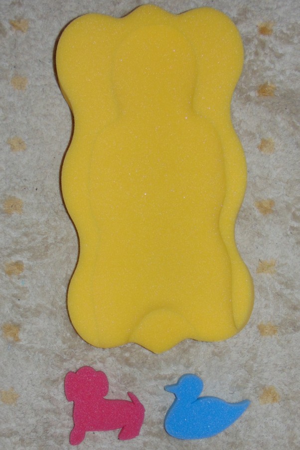 Gąbka żółta jest przeznaczona na dno wanienki żeby się łatwiej kąpało maleństwo a mniejsze gąbeczki to już raczej to mycia większego dzidziusia ;) nie jest to drogie a na pewno pomocne przy kąpieli