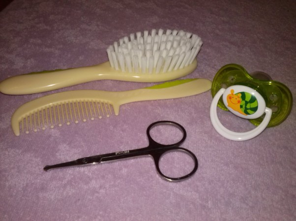 Grzebień, szczotka do włosów, nożyczki aby mieć zadbane paznokcie - żadna kobieta się bez tego nie obędzie. Co do smoczka - może nie będzie konieczny ale lepiej mieć w zanadrzu ;)