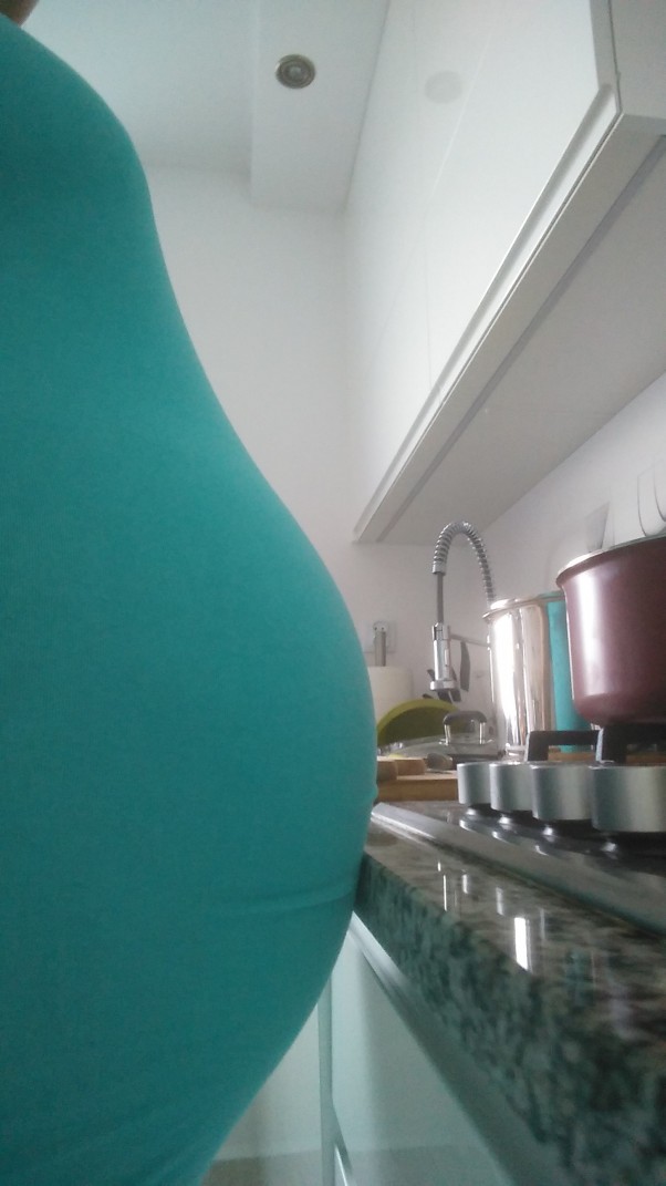 ciężko się zmieścić przy blacie bo brzuszek robi spory dystans ale gotować jedzonko trzeba :)