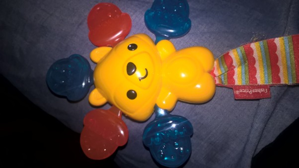 Ma kilka kolorowych końcówek które na pierwszy widok sprawiają wrażenie twardych są mięciutkie jak guma. Do gryzienia by ząbki wychodzące tak bardzo nie bolały a dziąsła nie swędziały