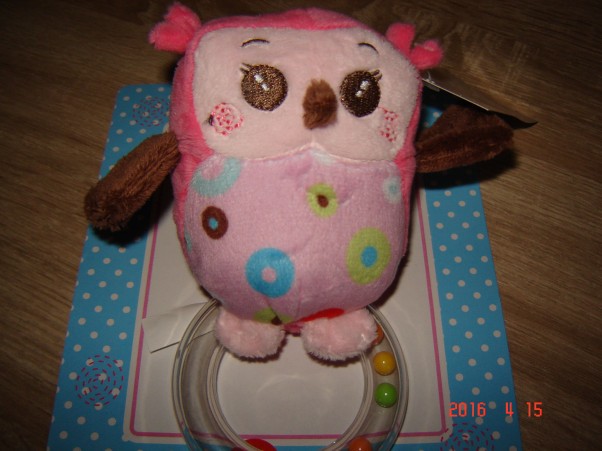 Grzechotka kółeczko z sową mądrą głową.Nasza malutka sóweczka będzie się nią bawić,a zanim to nastąpi rodzice przejma role zabawy