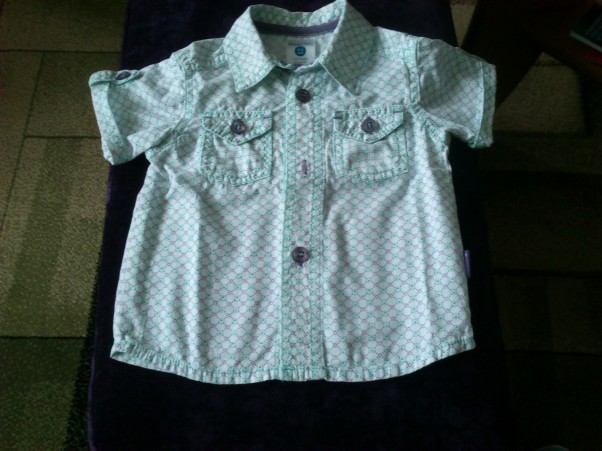 Będąc przy okazji w second hand wynalazłam taką oto gustowną koszulę dla synka. Rozmiar 62, nawet nie wiem czy zdążę ją mu ubrać i czy będzie wygodna? Ale była tak słodka, że nie mogłam się oprzeć :-)