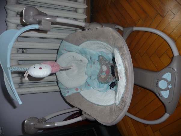 Mam nadzieje, że huśtawka będzie umiała uspokoić mojego maluszka. Ma 5 stopni prędkości, 3 stopnie głośności i 6 melodyjek w tym biały szum. Z listka zwisa piękna biedroneczka. Myślę, że huśtawka ułatwi mi życie.