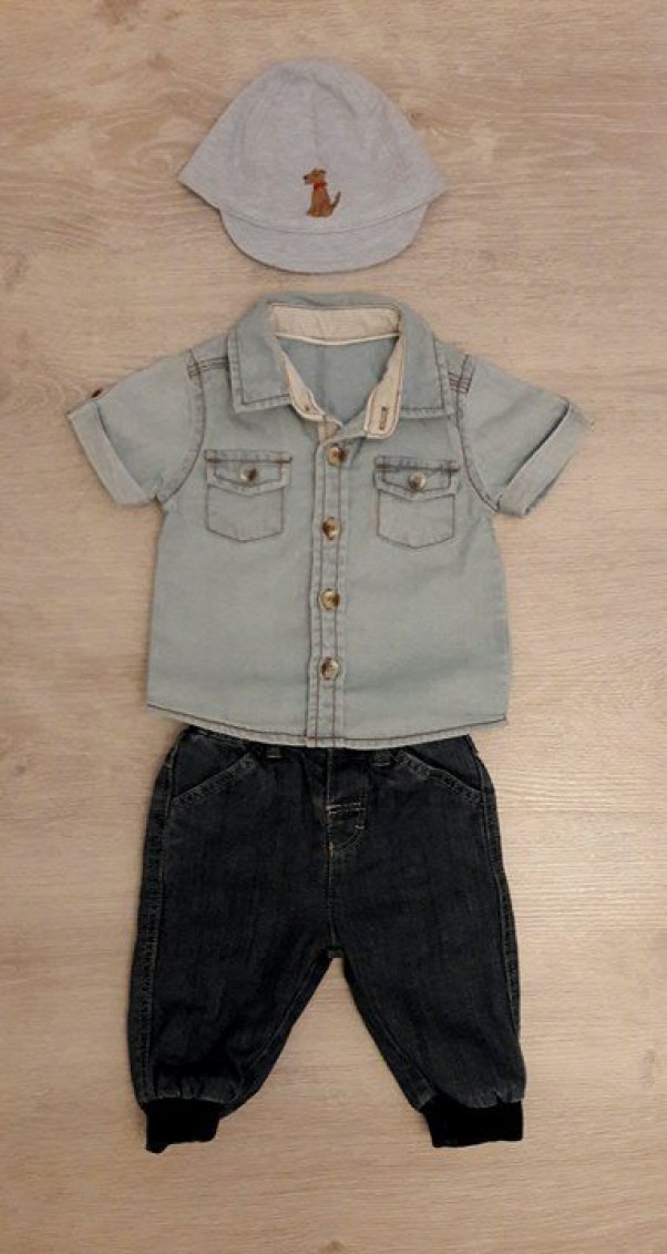 Czapeczka jest malusia, koszula i spodnie na 3 miesiące :) Trzeba jakieś buciki dokupić hihi