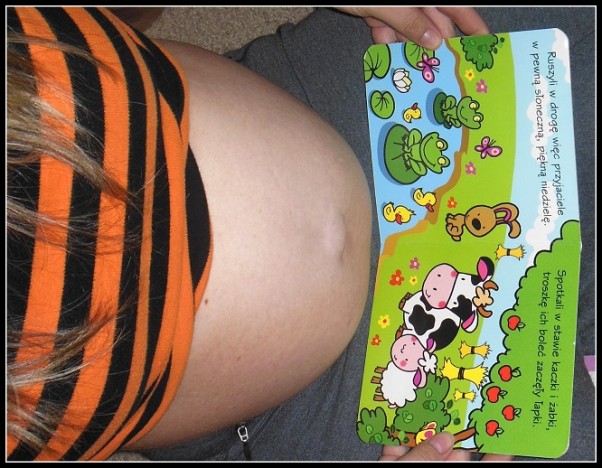Moja malutka ma już czytane bajeczki choć w brzuszku jeszcze się wierci. Jest tak malutka, ale jednak już się uczy, w końcu głosy rozpoznaję i gesty i ruchy. Więc mama za czytanie książeczek się jej wzięła, że gdy urodzi się malutka również będzie tego chciała. Już jest tak mądra dzięki czytaniu, że gdy bajka się podoba mam kopniaczka. (mówimy o lekkim drganiu).