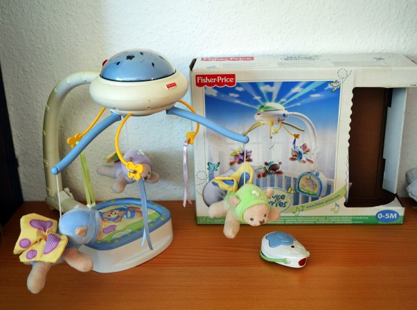 Przy pierwszej ciąży marzyła mi się karuzela do łóżeczka z projektorem, zanim jednak zdążyłam ją kupić dostałam w prezencie pluszową karuzelę. Bez sensu było kupować drugą,dziś jednak zdecydowałam się na wymarzoną karuzelę :) Ma różne melodyjki, światełko w dół , w górę projektor wyświetla wzorki, ach już się nie mogę doczekać aż malutka będzie przy niej zasypiała :)