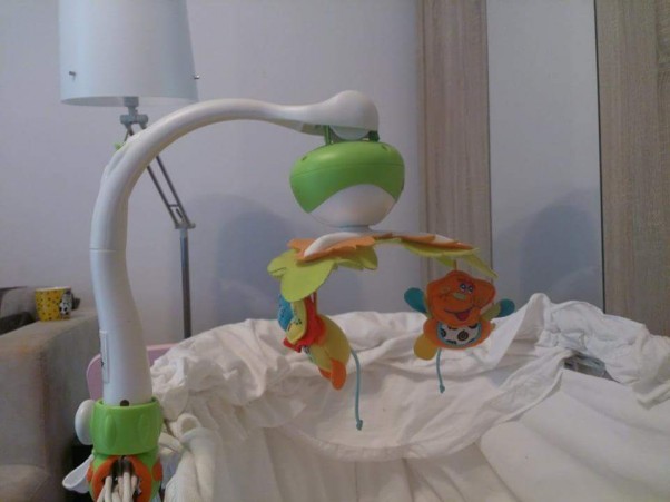 karuzela na kołysce a raczej koszu Mojżesza już założona i wypróbowana czy działa i ładnie wygląda-PASUJE IDEALNIE :)