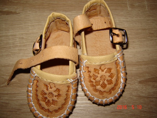 Do sukieneczki oczywiście nie mogła babcia zapomniec kupic malutkie kierpce o rozmarze 10 Ciekawe jak bedzie w tym kiedyś wygladać Sa przecudowne:)