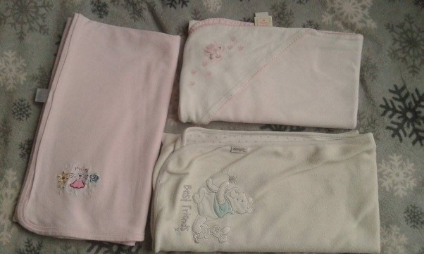 trzy koce bawełniane. Zakupiłam w weekend na wyprzedaży. Na pewno się przydadzą.