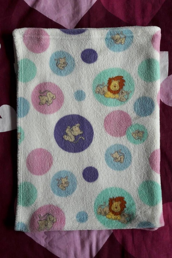 Jedyny kocyk po starszej siostrze, który nada się dla maluszka dzięki neutralnej kolorystyce, pasuje dla chłopca i dla dziewczynki. Pozostałe 3 kocyki Julka ma typowo dziewczęce :) będzie trzeba synkowi dokupić jakiś chłopięcy, chociaż pewnie dostanie od kogoś z rodziny :)